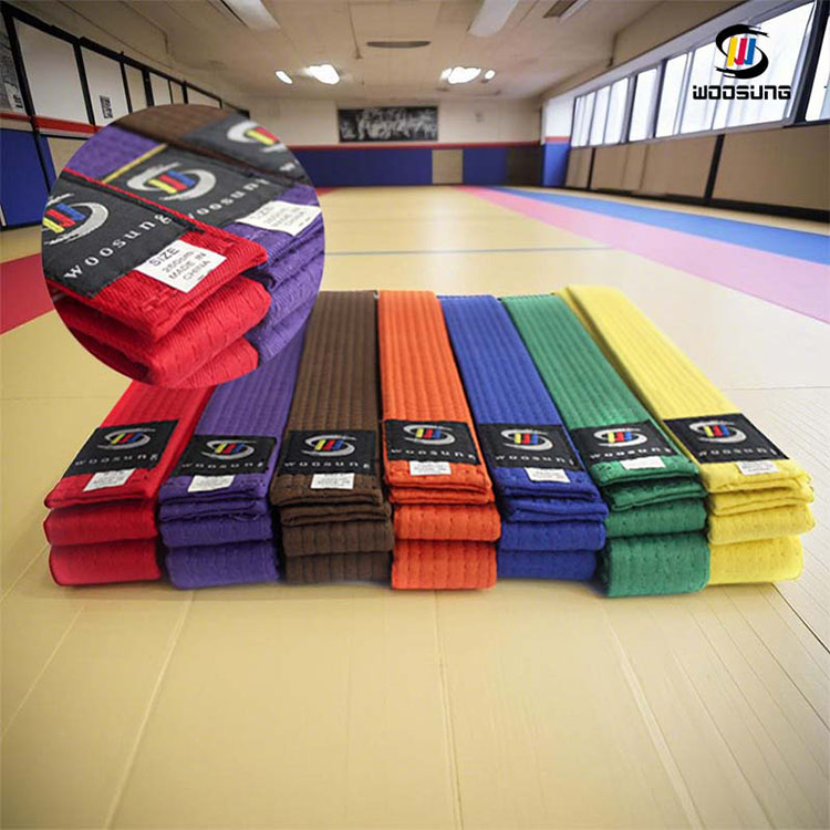 Каратэ белбеуі түстерінің эволюциясы практиктің шеберлігі мен психикалық өсуінің тікелей көрінісі болып табылады. WOOSUNG каратэ белдіктері жекпе-жек өнерінің дәстүрлерін қатаң сақтайды, барлық дәрежелер үшін түс нұсқаларының толық спектрін ұсынады: Ақ белбеулер бастау мен жаңа бастаманы білдіреді, жаңадан бастағандардың кішіпейілділігі мен білімге шөлділігін білдіреді; сары, қызғылт сары, жасыл және көк сияқты аралық түстер тәжірибеші маманның негізгі әдістерді меңгеруіне және жекпе-жек өнерінің принциптерін терең түсінуіне сәйкес келеді; қоңыр белдіктер кемелдену мен шеберліктің тұрақтылығын білдіреді, жоғары деңгейге жету үшін маңызды кезең; ал қара белбеу трансценденттілік пен мұраны білдіреді, бұл тәжірибеші маманның негізгі әдістерді меңгергенін және жекпе-жек өнерінің мәнін зерттеудің жаңа сапарына аттанғанын білдіреді. Жекелендірілген түс талаптары бар дойдолар үшін біз әртүрлі жекпе-жек өнері мектептерінің дәстүрлерін құрметтей отырып, екі түсті немесе жолақты белбеу сияқты арнайы стильдерді де теңшей аламыз.