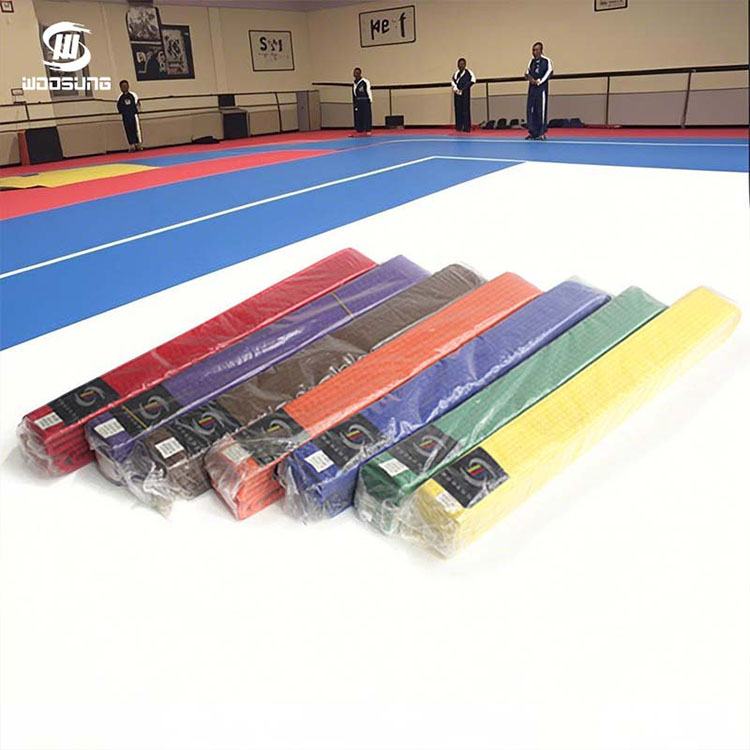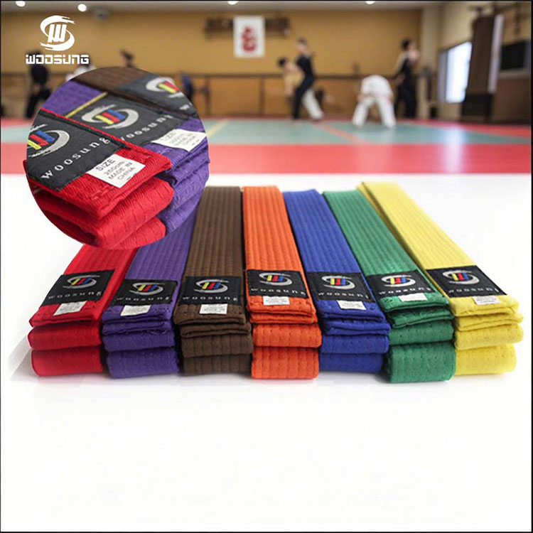 WOOSUNG каратэ белбеулері жеке басының символы және жекпе-жек өнерімен айналысатындар үшін прогрестің белгісі ретінде жекпе-жек жабдықтарын жасаудағы 20 жылдан астам тәжірибеге негізделген біздің негізгі өніміміз болып табылады. Біз ақ белбеуден қара белбеуге дейінгі барлық деңгейлерді қамтитын тамаша беріктігі мен тозуға төзімділігі бар кәсіби сапалы белдіктерді жасау үшін дәл тоқу және қоршаған ортаға зиянсыз бояу процестерімен үйлесетін жоғары сапалы таза мақта және полиэфир қоспалары сияқты жоғары сапалы материалдарды қолданамыз.