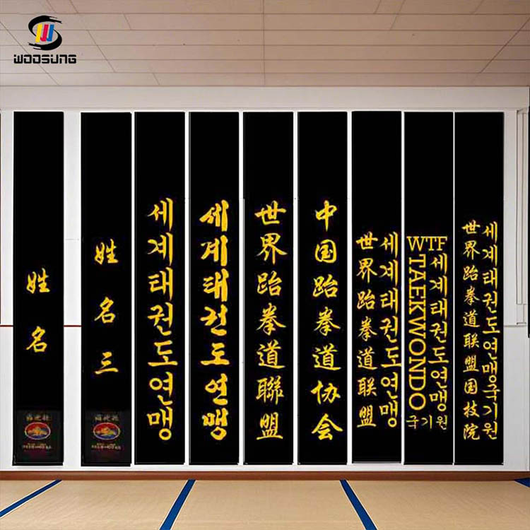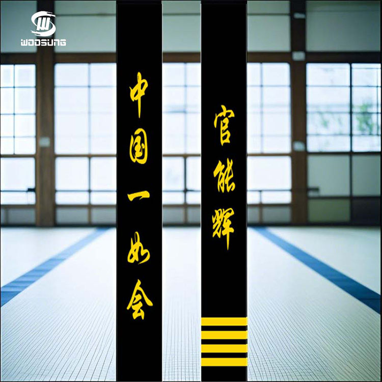 TheWOOSUNGBlack Belt Karate Logo Belt әр түрлі жаттығу орталары мен жарыс параметрлеріне табиғи түрде үйлесетін ұстамды және тұрақты көріністі ұсына отырып, терең, таза қара негізгі түспен ерекшеленеді. Жоғары сапалы тоқыма құрылымы қайталап созу, терлеу және жуудан кейін де тамаша жұмсақтық пен қолдауды сақтайды, күнделікті жоғары қарқынды пайдалану талаптарын қанағаттандырады.