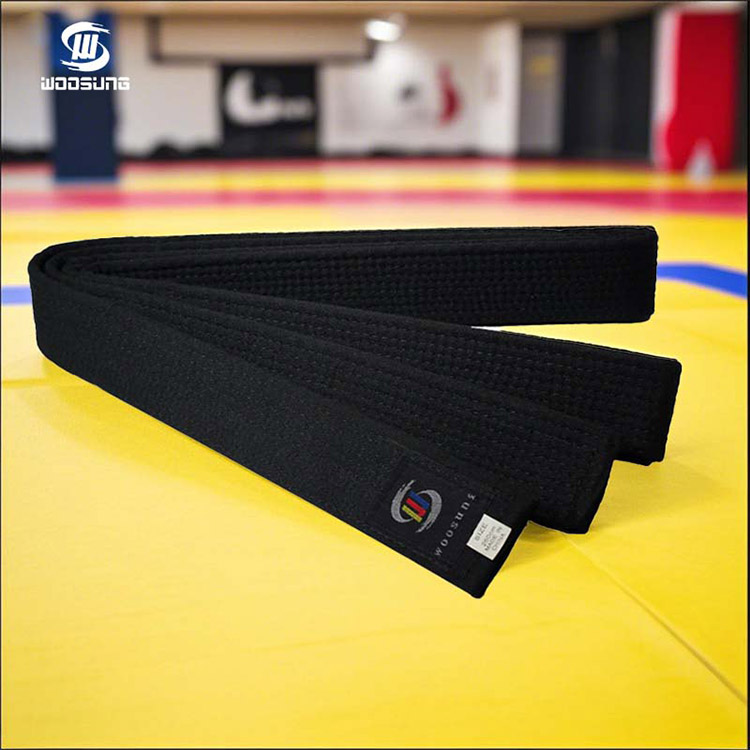 Black Belt Karate Logo Belt - бұл кәсіби каратэмен айналысушыларға, дожоларға және іс-шараларды ұйымдастырушыларға ұсынатын жоғары стандартты қара белбеу өнімі. WOOSUNG компаниясының осы қара белбеу каратэ белбеуінің дизайны мен өндірісі жаттығу қарқындылығына, киюге ыңғайлылыққа және символдық мәнге басымдық береді. Біз тұтынушы қажеттіліктеріне сәйкес dojo логотиптерін, бренд логотиптерін немесе жеке логотиптерді теңшеуге мүмкіндік беретін пайдаланушы логотипі қызметтерін қолдаймыз. Ол оқыту, бағалау, демонстрациялар және халықаралық нарықтағы сатып алулар үшін кеңінен қолданылады.