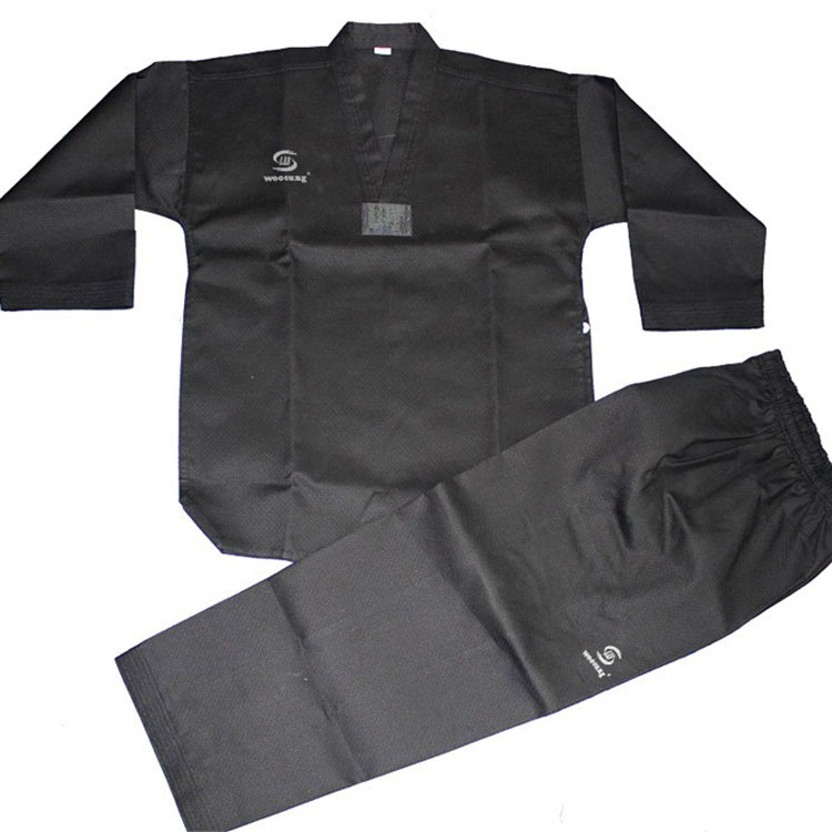 WOOSUNG қара таэквондо формасы классикалық қара түсте таэквондоның қайталанбас тартымдылығын бейнелейді. Қытайдағы таэквондо киімінің фабрикасы ретінде біз жаттығуларға, спаррингтерге және спектакльдерге арналған жоғары сапалы киім шешімдерін ұсынуға маманданамыз.