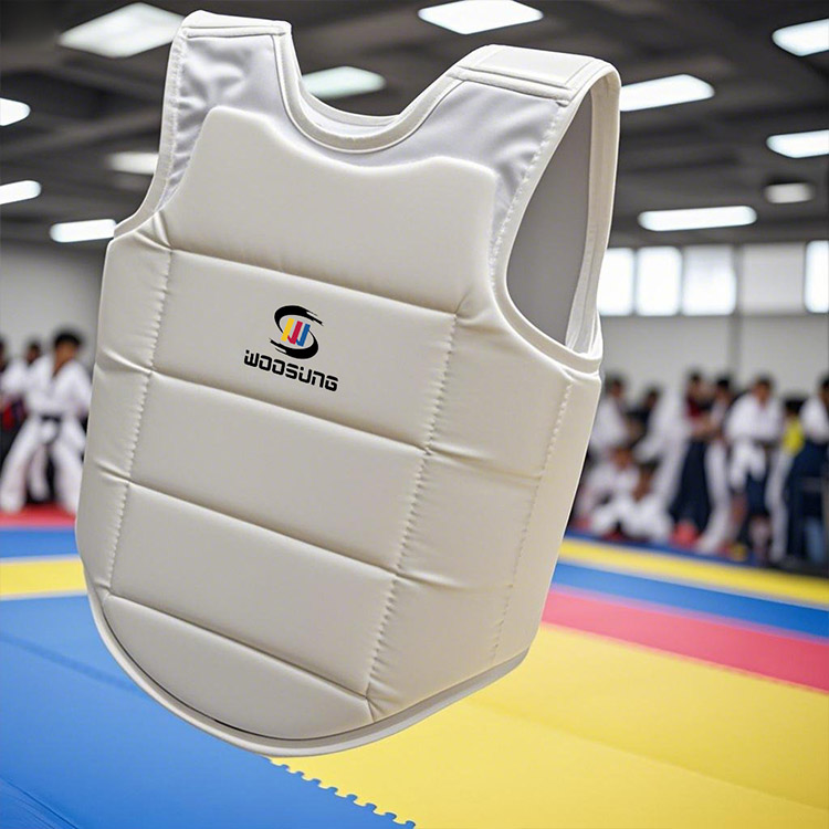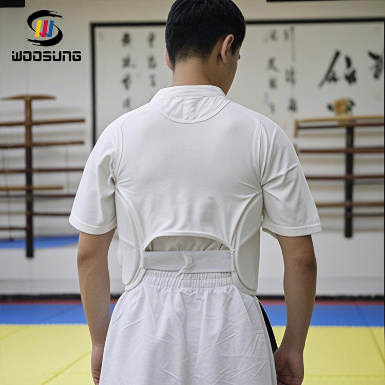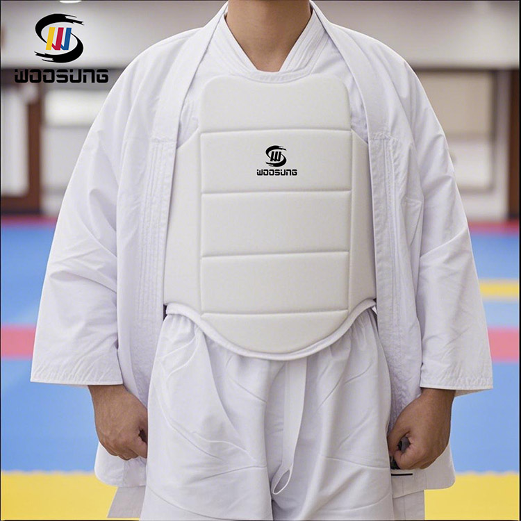 ДизайнWOOSUNGPU Karate Chest Guard дәстүрлі жекпе-жек киімінің қарапайым құрылымы мен пропорцияларынан шабыттандырады. Сыртқы түрі бойынша жалпы стиль ұстамды және таза, әсірелеу пішіндерге ұмтылмайды, бірақ кәсіби шеберлікті және жекпе-жек өнерінің рухын жалғастыруды көрсетеді.