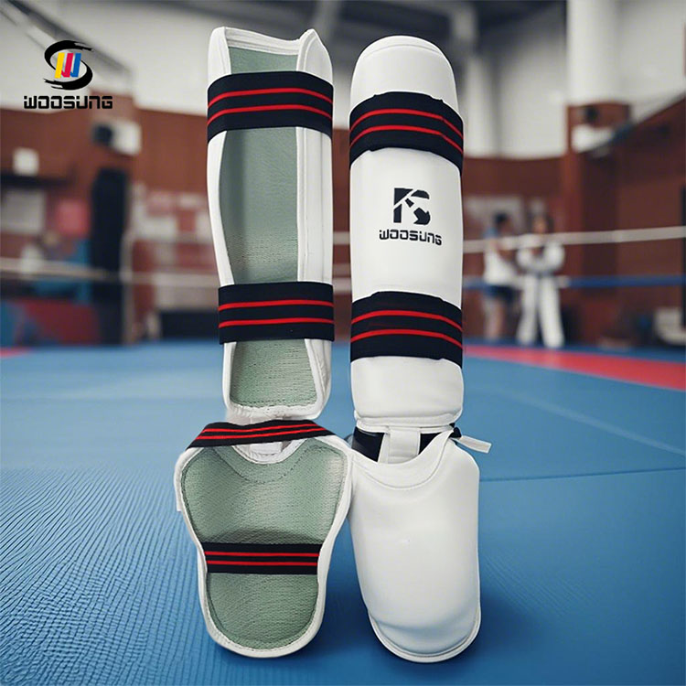 WOOSUNG Taekwondo Shin Instep Guard — Қытайда өндірілген және жеткізілген — жаттығулар мен спарринг сценарийлері үшін арнайы әзірленген кәсіби қорғаныс құралы. Оның негізгі функциясы - жіліншік пен табандарды қорғау, осылайша соққыдан болатын жарақат алу қаупін азайту.