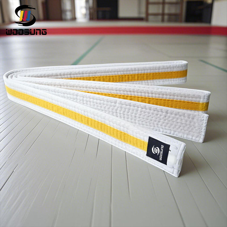 WOOSUNG жоғары сапалы таэквондо жолақты белдіктерін қамтамасыз етеді. Олимпиадалық деңгейдегі серіктес ретінде біз ыңғайлылық пен беріктікті қамтамасыз ету үшін қалың, таза мақта мата мен көп тігісті тігу әдістерін қолданамыз. Әрбір жолақты белдік тәжірибеші маманның абыройы мен прогресін бейнелейді, CE және BV сертификаты бар және жаһандық OEM теңшеуін қолдайды.